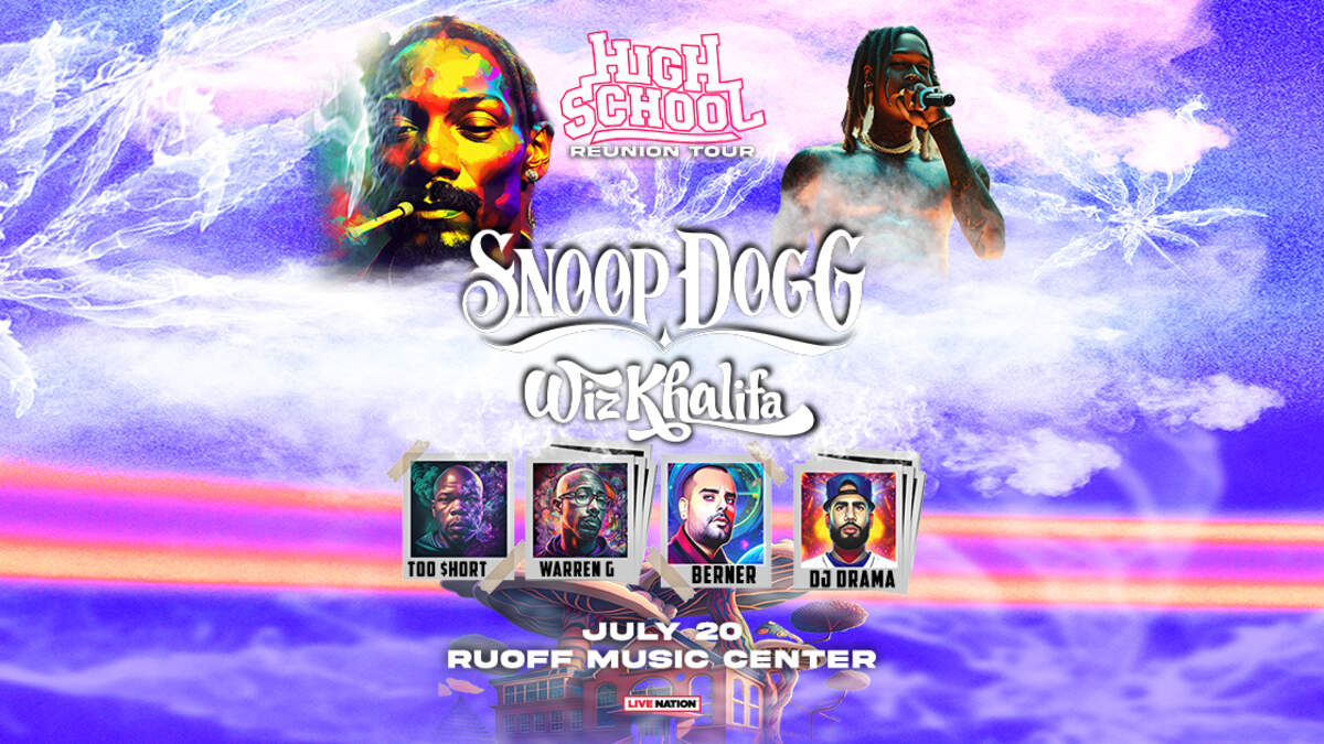 High School Reunion Tour Snoop Dogg, Wiz Khalifa, Too $hort, Warren G, Berner Ruoff Music Center Thursday, July 20, 2023 On Sale: Friday, March 10 at 10AM HERE